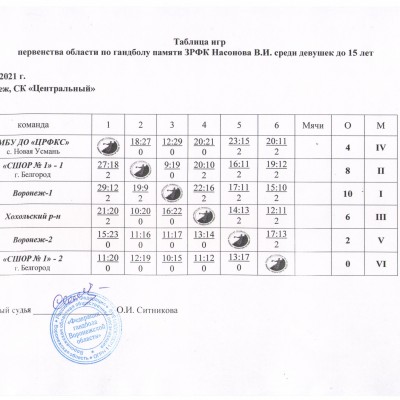 Первенство области по гандболу памяти ЗРФК Насонова В.И. среди девушек до 15 лет