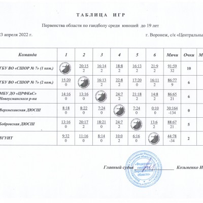 Дата проведения: 19-23 апреля 2022 г. Место проведения: с/к "Центральный"