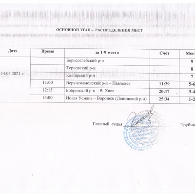 Место и дата проведения: ФОК ДС "Хава" с. Верхняя Хава, Воронежская обл., 12-14 апреля 2021 г.