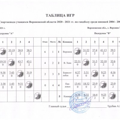 XIX Спартакиада учащихся Воронежской области 2020-2021 гг по гандболу среди юношей 2оо4-2005 г.р.