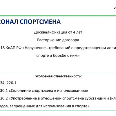 В целях соблюдения антидопингового законодательства и предотвращения нарушений общероссийских антидопинговых правил размещаем следующую информацию:
